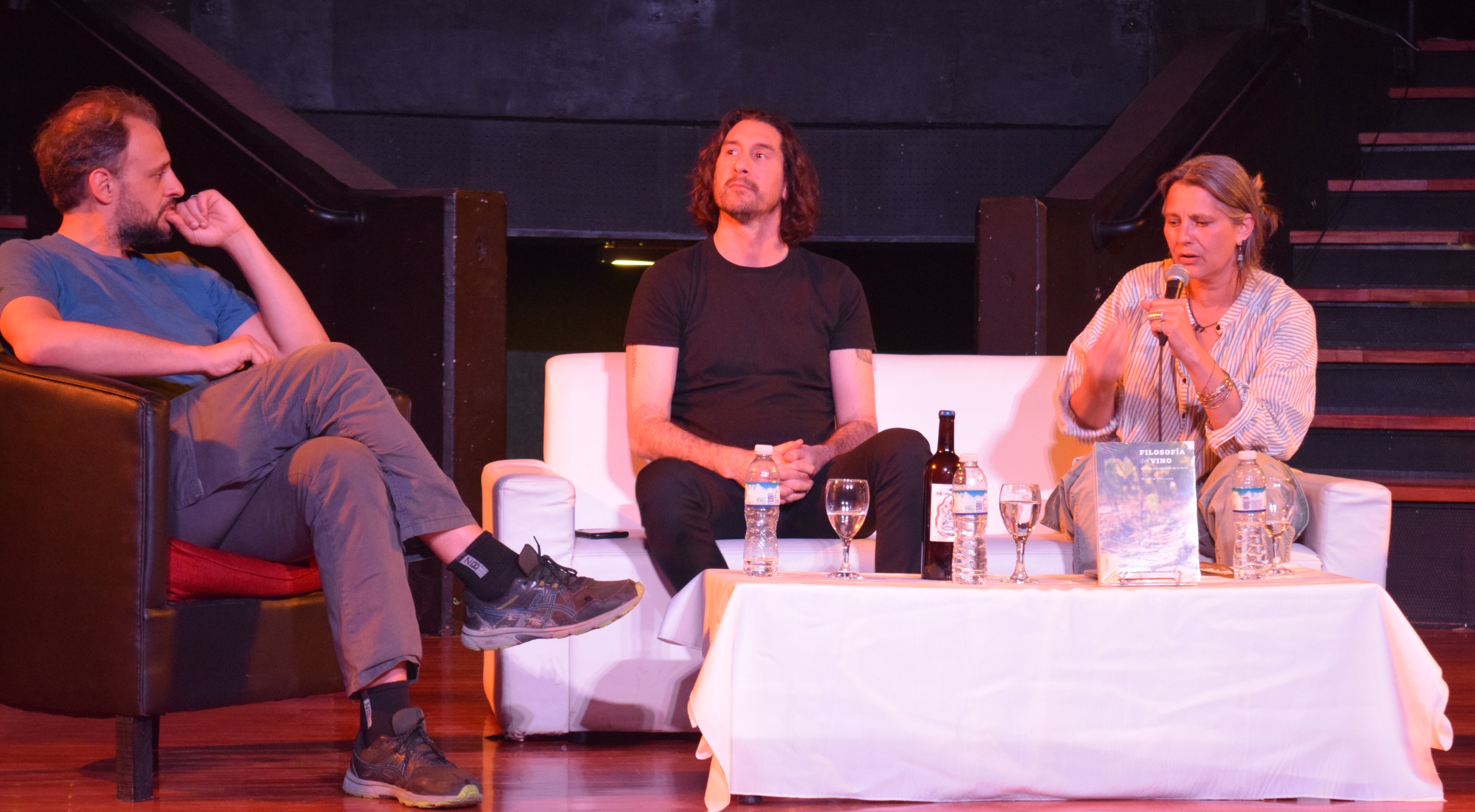 El brindis del final: La última presentación de EDIUNC en la feria tuvo como protagonista a una de las novedades de este año: «Filosofía del vino. Un viaje a la sabiduría de la tierra». Martín Fisicaro, el autor, volvió a la provincia desde su Balcarce natal para conversar con una de las protagonistas del libro, la viticultora Joanna Foster, y repasar algunos de los recorridos que la obra desgrana a través de las entrevistas de Fisicaro.