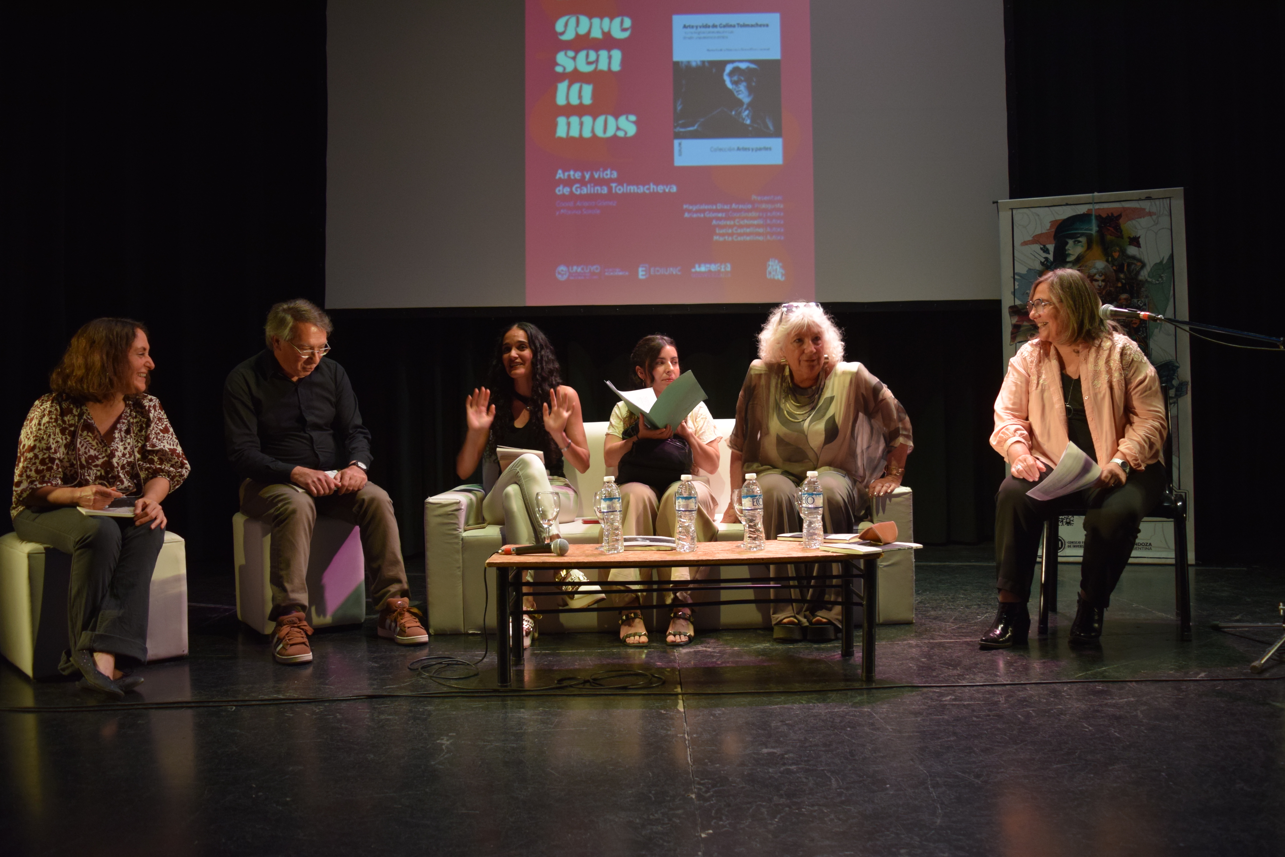 El doblete de Galina: el libro «Arte y vida de Galina Tolmacheva» viene haciendo una gran performance desde su salida de imprenta y en esta feria tuvo doble presentación. Por un lado visitamos el Este, en la sede de la feria en el Departamento de San Martín, donde en la concurrida sala de los espejos del Polideportivo Prof. Antonio Sasso, Ariana Gómez y Lucía Castellino conversaron sobre la obra dedicada a la directora teatral rusa Galina Tolmacheva. La ceremonia se repitió en el Le Parc, ya con casi todo el team autoral, Gómez, Cichinelli, Lucía y Marta Castellino, junto a la prologuista Magdalena Díaz Araujo y a otro reconocido periodista y crítico cultura, Fausto Alfonso.